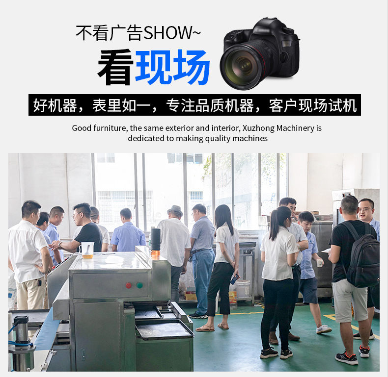 廣州旭眾食品機械有限公司是一家集科研開發(fā),生產(chǎn)設計,營銷服務為一體的現(xiàn)代化生產(chǎn)企業(yè)?,F(xiàn)代化生產(chǎn)車間,精湛制造技術,所產(chǎn)機械歷經(jīng)市場重重考驗,不斷贏得海內(nèi)外客戶的贊譽。
