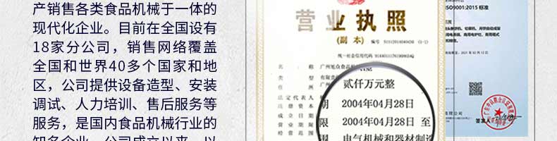 廣州旭眾食品機械有限公司是一家集科研開發(fā),生產設計,營銷服務為一體的現(xiàn)代化生產企業(yè)?,F(xiàn)代化生產車間,精湛制造技術,所產機械歷經市場重重考驗,不斷贏得海內外客戶的贊譽。