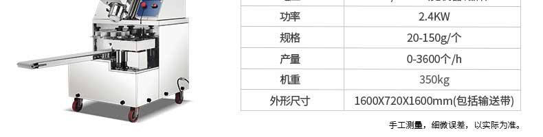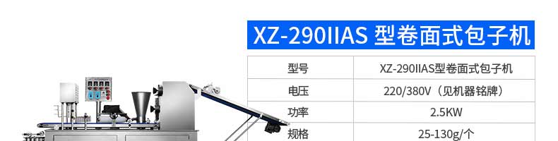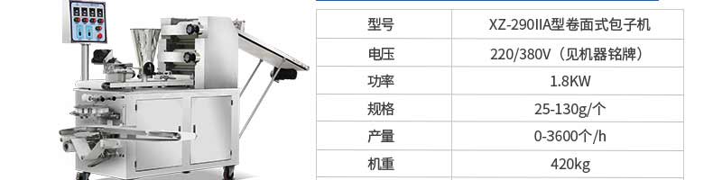 名稱XZ-290AS智能型卷面包子機(jī) 電源220/380v 功率4.05kw 產(chǎn)量0-3600個(gè)/h 尺寸3280*1500*1420mm 重量480kg 規(guī)格 其他