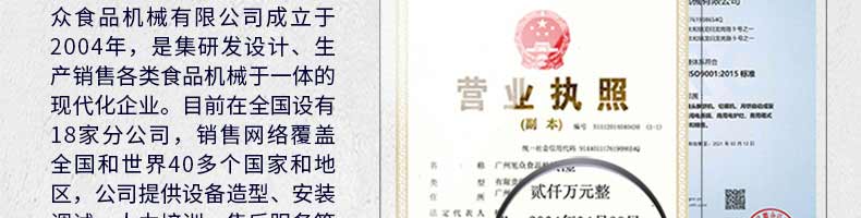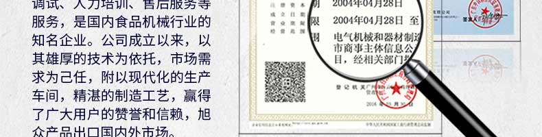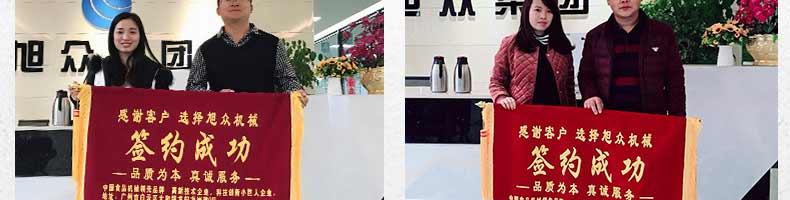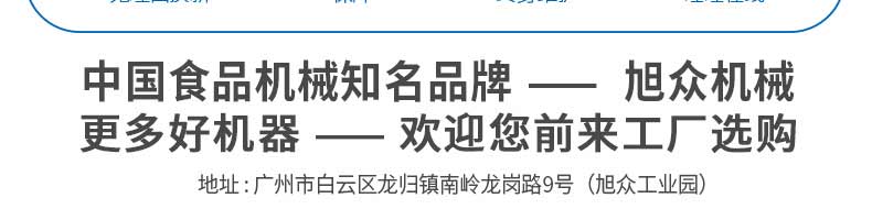 廣州旭眾食品機械有限公司是一家集科研開發(fā),生產設計,營銷服務為一體的現(xiàn)代化生產企業(yè)。現(xiàn)代化生產車間,精湛制造技術,所產機械歷經(jīng)市場重重考驗,不斷贏得海內外客戶的贊譽。