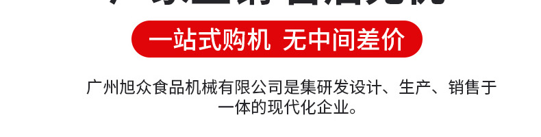 廣州旭眾食品機械有限公司是一家集科研開發(fā),生產(chǎn)設(shè)計,營銷服務(wù)為一體的現(xiàn)代化生產(chǎn)企業(yè)。現(xiàn)代化生產(chǎn)車間,精湛制造技術(shù),所產(chǎn)機械歷經(jīng)市場重重考驗,不斷贏得海內(nèi)外客戶的贊譽。