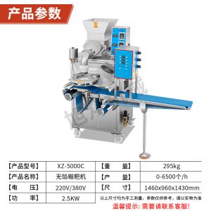 名稱XZ-5000C糍粑機(jī) 電源220V/380V 功率2.5KW 產(chǎn)量0-6500個/h 尺寸1460x960x1430mm以上尺寸均為手工測量,參數(shù)僅供參考 重量295kg 規(guī)格 其他