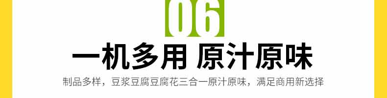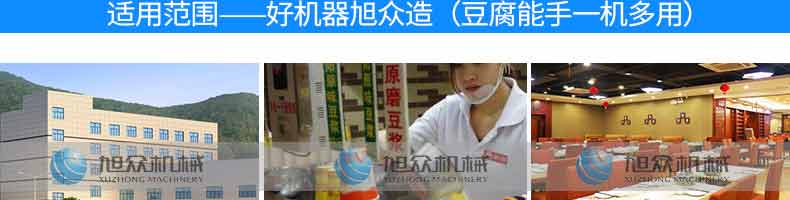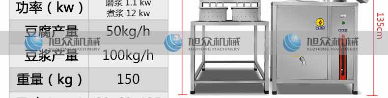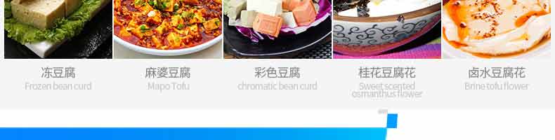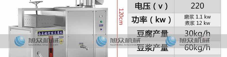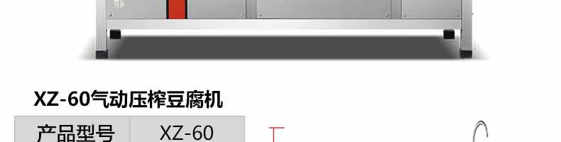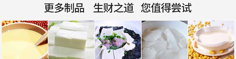 XZ-60智能豆腐機,一機多用:可生產(chǎn)豆腐系列產(chǎn)品:單色(嫩,老)豆腐、多彩豆 腐、單色豆腐皮、多色豆腐皮、彩色豆腐干、豆?jié){、豆花等豆制品制作,還可以與其他設(shè)備和工藝配套生 產(chǎn)更多的豆制品。