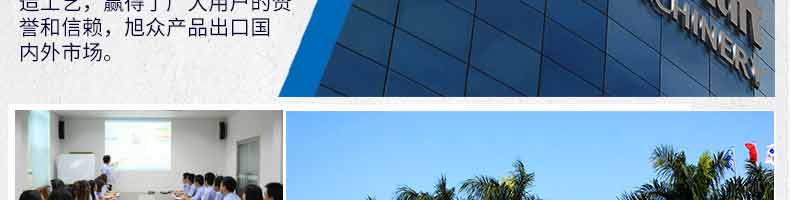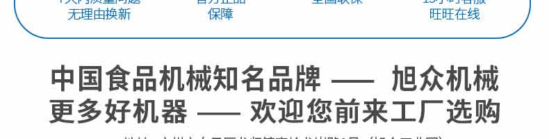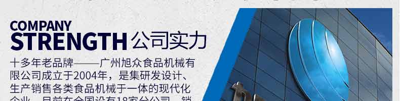 廣州旭眾食品機械有限公司是一家集科研開發(fā),生產(chǎn)設(shè)計,營銷服務(wù)為一體的現(xiàn)代化生產(chǎn)企業(yè)?,F(xiàn)代化生產(chǎn)車間,精湛制造技術(shù),所產(chǎn)機械歷經(jīng)市場重重考驗,不斷贏得海內(nèi)外客戶的贊譽。
