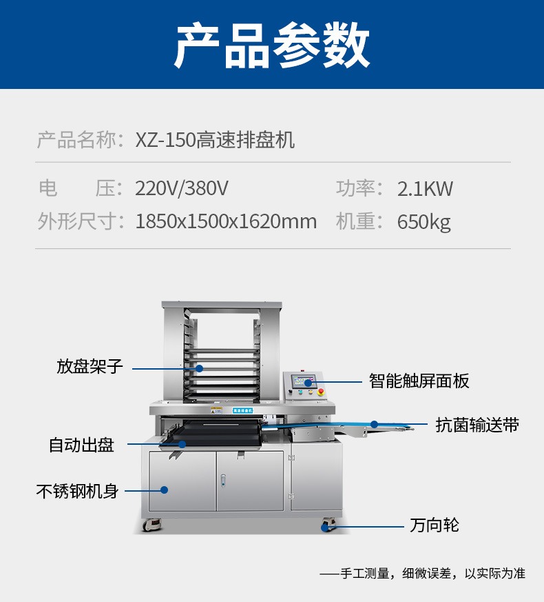 名稱多功能商用高速排盤機 電源220V/380V 功率2.1KW 產(chǎn)量 尺寸1850x1500x1620mm 重量650kg 規(guī)格 其他