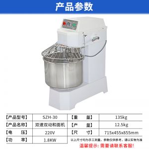 SZH-30型雙速雙動和面機,本機適合攪拌各種面包、包子、饅頭、湯圓、披薩餅面團(tuán),專業(yè)設(shè)計避免面團(tuán)過分升溫并確保面團(tuán)含氧量。過載、缺相保護(hù)裝置,防護(hù)罩安全連動裝置。