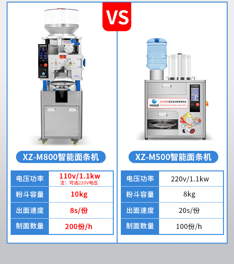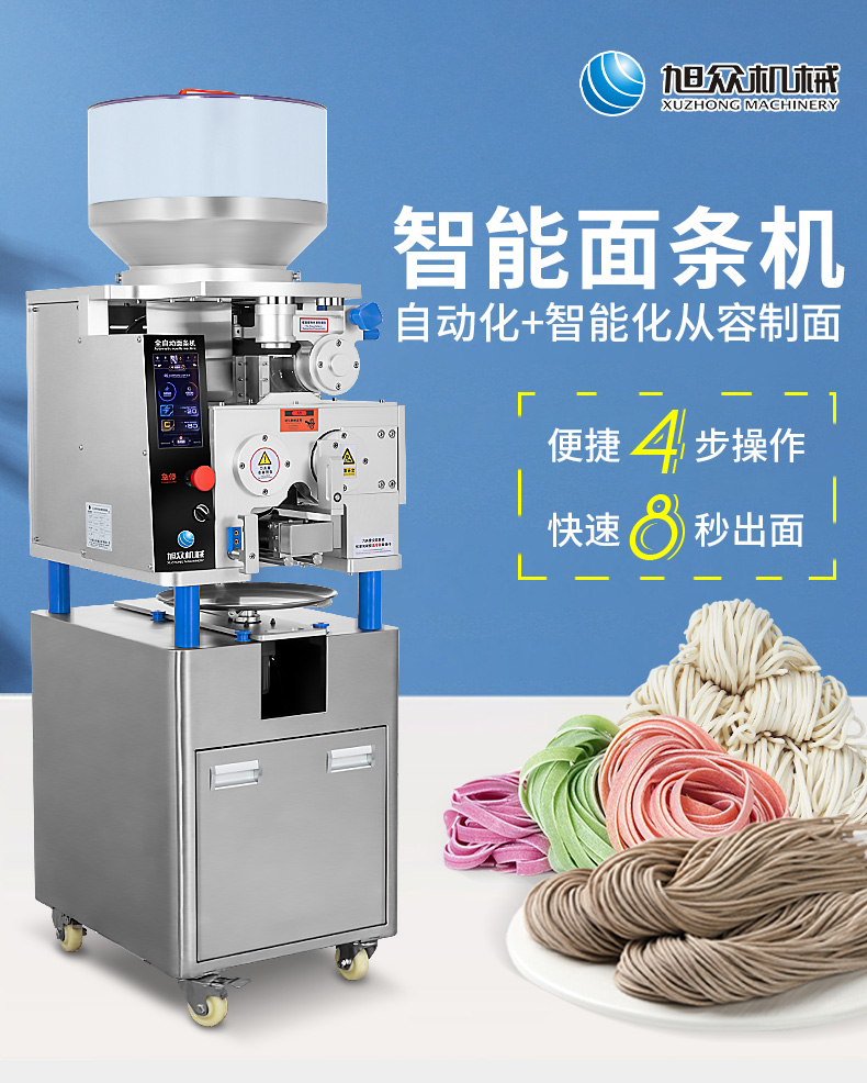 XZ-M800面條機(jī),制作多種面條:拉面、小面、牛肉面、韭葉面板面、褲帯面、蔬菜面、水果面、雜糧面8秒快速出面人性化設(shè)計(jì),更便捷更高效與同類型機(jī)器相比,出面更快、秒換刀具。全不銹鋼刀組全不銹鋼可拆卸刀組,一秒更換防腐蝕抗氧化,清洗方便。
