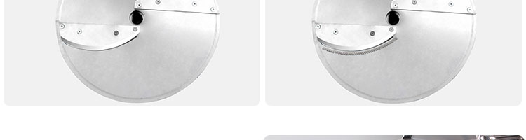 名稱(chēng)XZ-682多功能切菜機(jī) 電源220/380V(見(jiàn)機(jī)器銘牌) 功率0.75kw 產(chǎn)量200-1000千克/小時(shí) 尺寸770*460*800mm 重量140kg 規(guī)格標(biāo)配刀具尺寸:切絲:3mm,切片:3mm,切?。?0*10mm??蛇x的刀具尺寸:切絲:4、5、6mm 其他