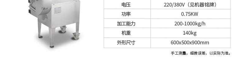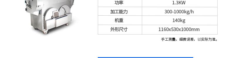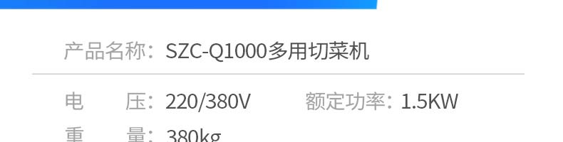 名稱SZC-Q1000多用切菜機(jī) 電源220/380v 功率1.5kw 產(chǎn)量 尺寸1300*510*1050mm 重量380kg 規(guī)格 其他
