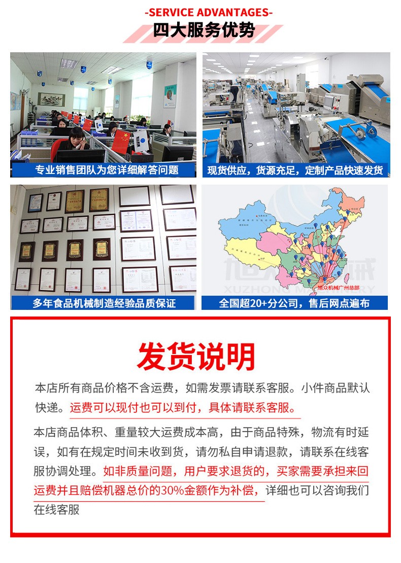 廣州旭眾食品機械有限公司是一家集科研開發(fā),生產(chǎn)設(shè)計,營銷服務(wù)為一體的現(xiàn)代化生產(chǎn)企業(yè)?,F(xiàn)代化生產(chǎn)車間,精湛制造技術(shù),所產(chǎn)機械歷經(jīng)市場重重考驗,不斷贏得海內(nèi)外客戶的贊譽。