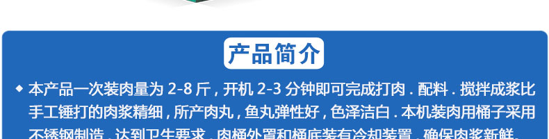 名稱SZ-28型高速肉丸打漿機 電源380V 功率5.5KW 產(chǎn)量10kg/次 尺寸760*400*850mm 重量130KG 規(guī)格 其他