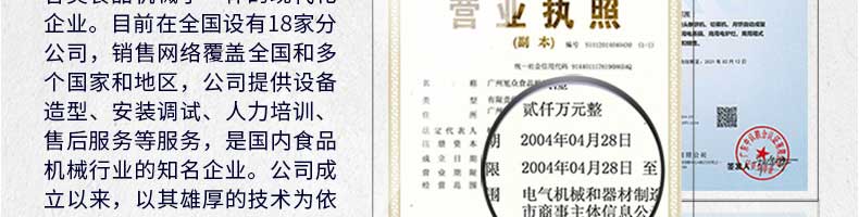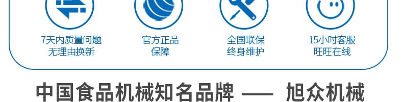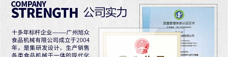 廣州旭眾食品機(jī)械有限公司是一家集科研開發(fā),生產(chǎn)設(shè)計,營銷服務(wù)為一體的現(xiàn)代化生產(chǎn)企業(yè)?,F(xiàn)代化生產(chǎn)車間,精湛制造技術(shù),所產(chǎn)機(jī)械歷經(jīng)市場重重考驗(yàn),不斷贏得海內(nèi)外客戶的贊譽(yù)。