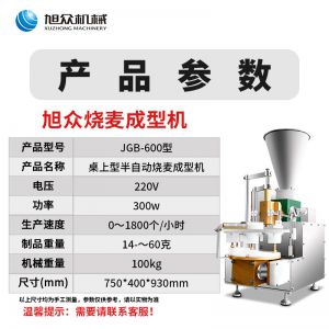 JGB-600燒麥機(jī),自動填餡包皮功能:臺式半自動單聯(lián)式燒麥成型機(jī),可以使用手工燒麥皮配合機(jī)器生產(chǎn)燒賣,其面皮口感好,產(chǎn)品外形美觀。餡料多與少可調(diào)節(jié)高效率1800個小時