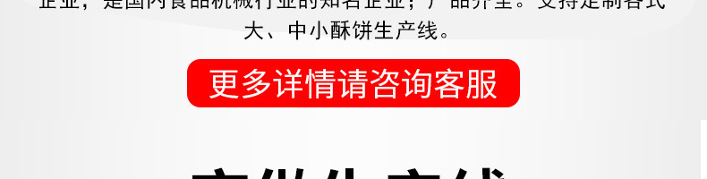 名稱酥餅機(jī)生產(chǎn)線 電源220/380V(見機(jī)器銘牌) 功率各款型號有所不同,請聯(lián)系聯(lián)系員 產(chǎn)量聯(lián)系銷售員 尺寸聯(lián)系銷售員 重量聯(lián)系銷售員 規(guī)格聯(lián)系銷售員 其他