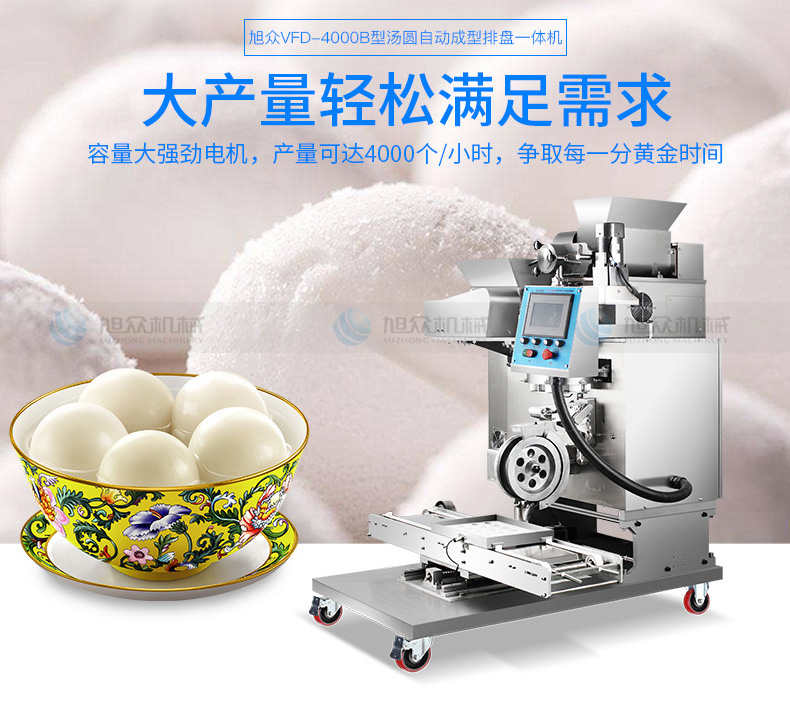VFD-4000B湯丸機(jī),告別手工時(shí)代旭僉多功能湯圓機(jī)輕松解決問題。大產(chǎn)量輕松滿足需求容量大強(qiáng)勁電機(jī),產(chǎn)量可達(dá)4000個(gè)小時(shí),爭取每一分黃金時(shí)間