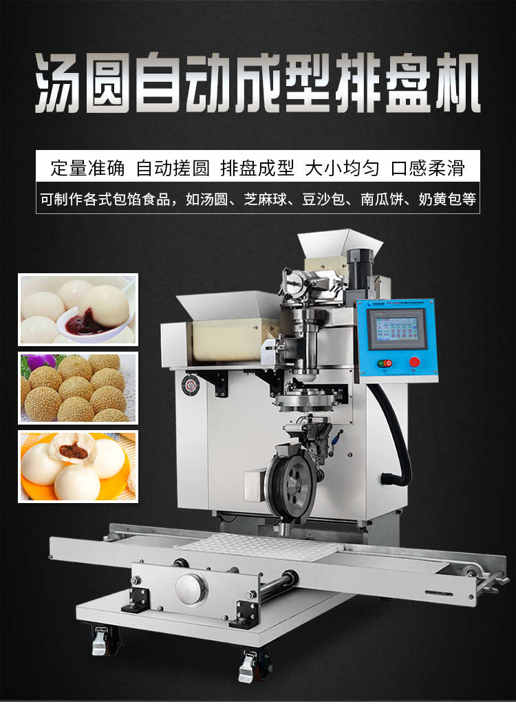 VFD-4000B湯圓機(jī),定量準(zhǔn)確自動(dòng)搓圓排盤成型大小均勻口感柔滑??芍谱鞲魇桨W食品,如湯圓、芝麻球、豆沙包、南瓜餅、奶黃包等