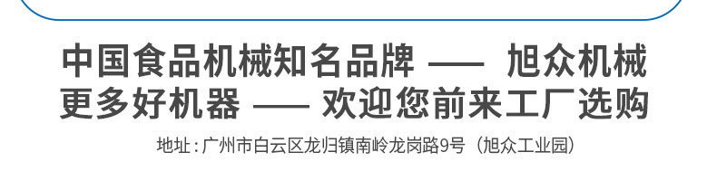 廣州旭眾食品機械有限公司是一家集科研開發(fā),生產(chǎn)設計,營銷服務為一體的現(xiàn)代化生產(chǎn)企業(yè)?,F(xiàn)代化生產(chǎn)車間,精湛制造技術,所產(chǎn)機械歷經(jīng)市場重重考驗,不斷贏得海內(nèi)外客戶的贊譽。