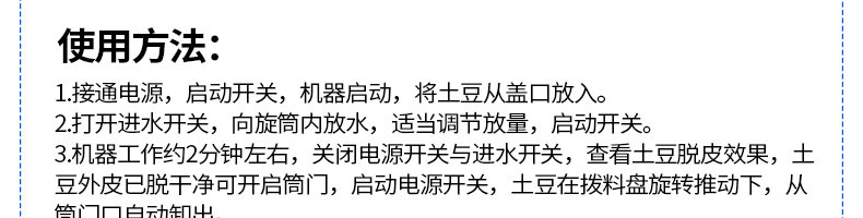 名稱(chēng)pp350薯仔脫皮機(jī) 電源220/380v 功率1.5kw 產(chǎn)量 尺寸900*550*920mm 重量110kg 規(guī)格 其他