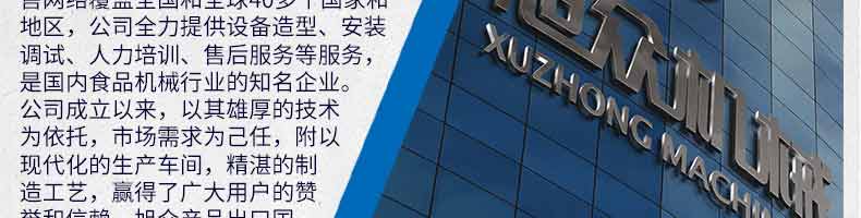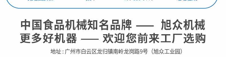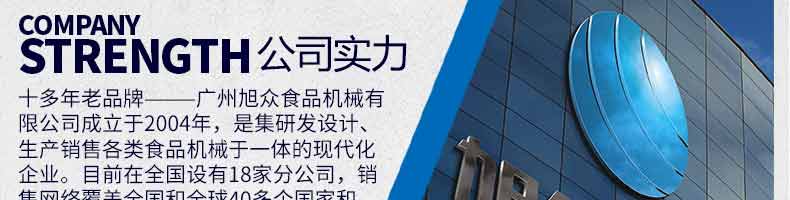 廣州旭眾食品機械有限公司是一家集科研開發(fā),生產(chǎn)設計,營銷服務為一體的現(xiàn)代化生產(chǎn)企業(yè)。現(xiàn)代化生產(chǎn)車間,精湛制造技術,所產(chǎn)機械歷經(jīng)市場重重考驗,不斷贏得海內(nèi)外客戶的贊譽。