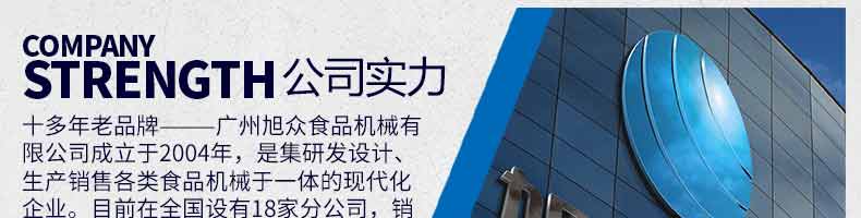 廣州旭眾食品機械有限公司是一家集科研開發(fā),生產(chǎn)設(shè)計,營銷服務(wù)為一體的現(xiàn)代化生產(chǎn)企業(yè)?,F(xiàn)代化生產(chǎn)車間,精湛制造技術(shù),所產(chǎn)機械歷經(jīng)市場重重考驗,不斷贏得海內(nèi)外客戶的贊譽。