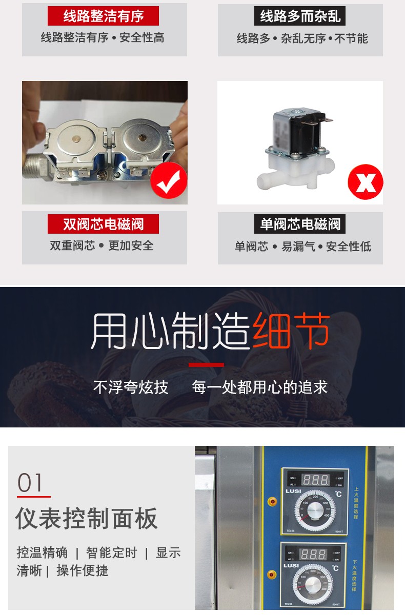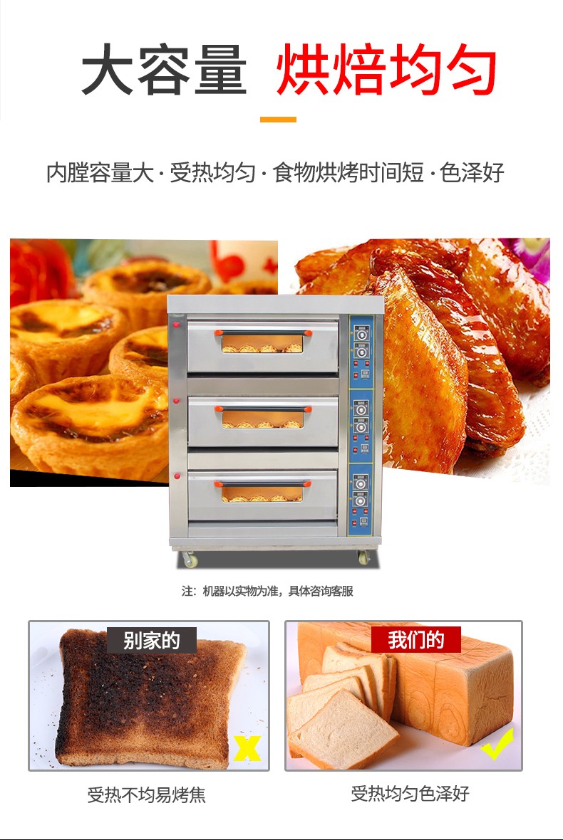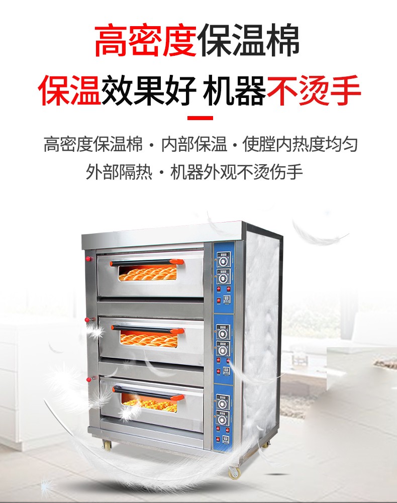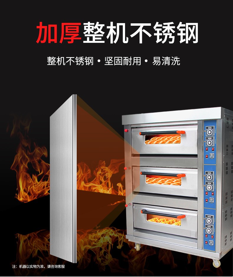 名稱三層六盤儀表版燃氣烤箱 電源220V 功率0.3KW 產(chǎn)量 尺寸1340*908*1690mm 重量300KG 規(guī)格三層六盤 其他