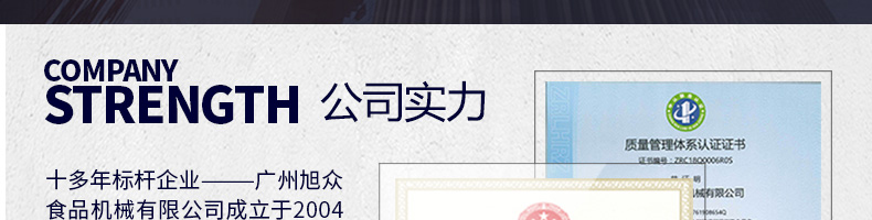 廣州旭眾食品機(jī)械有限公司是一家集科研開發(fā),生產(chǎn)設(shè)計(jì),營銷服務(wù)為一體的現(xiàn)代化生產(chǎn)企業(yè)?,F(xiàn)代化生產(chǎn)車間,精湛制造技術(shù),所產(chǎn)機(jī)械歷經(jīng)市場重重考驗(yàn),不斷贏得海內(nèi)外客戶的贊譽(yù)。