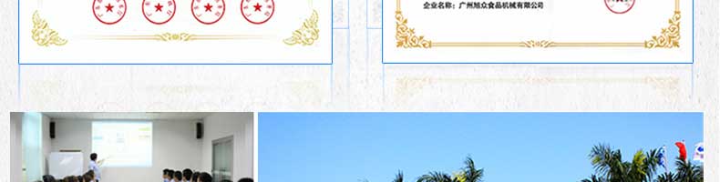 廣州旭眾食品機(jī)械有限公司是一家集科研開(kāi)發(fā),生產(chǎn)設(shè)計(jì),營(yíng)銷(xiāo)服務(wù)為一體的現(xiàn)代化生產(chǎn)企業(yè)?,F(xiàn)代化生產(chǎn)車(chē)間,精湛制造技術(shù),所產(chǎn)機(jī)械歷經(jīng)市場(chǎng)重重考驗(yàn),不斷贏得海內(nèi)外客戶的贊譽(yù)。