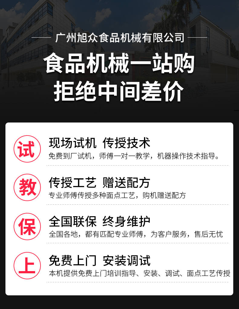 廣州旭眾食品機(jī)械有限公司是一家集科研開發(fā),生產(chǎn)設(shè)計(jì),營(yíng)銷服務(wù)為一體的現(xiàn)代化生產(chǎn)企業(yè)?,F(xiàn)代化生產(chǎn)車間,精湛制造技術(shù),所產(chǎn)機(jī)械歷經(jīng)市場(chǎng)重重考驗(yàn),不斷贏得海內(nèi)外客戶的贊譽(yù)。