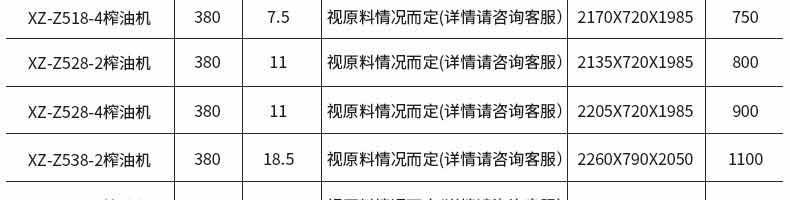 名稱立式50榨油機 電源220/380V(見機器名牌) 功率3~18.5KW 產(chǎn)量 尺寸下拉見產(chǎn)品參數(shù)表 重量 規(guī)格 其他
