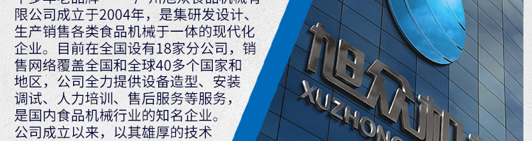 廣州旭眾食品機(jī)械有限公司是一家集科研開發(fā),生產(chǎn)設(shè)計(jì),營銷服務(wù)為一體的現(xiàn)代化生產(chǎn)企業(yè)?,F(xiàn)代化生產(chǎn)車間,精湛制造技術(shù),所產(chǎn)機(jī)械歷經(jīng)市場重重考驗(yàn),不斷贏得海內(nèi)外客戶的贊譽(yù)。