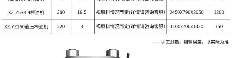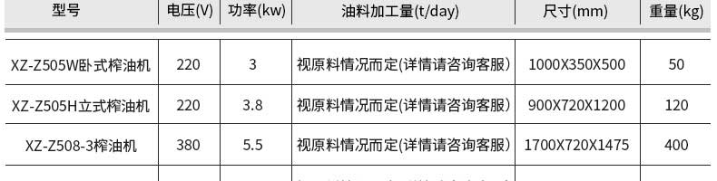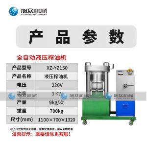 名稱XZ-YZ150型液壓榨油機 電源220v 功率3kw 產量9kg/次 尺寸1100*700*1320mm 重量700kg 規(guī)格 其他